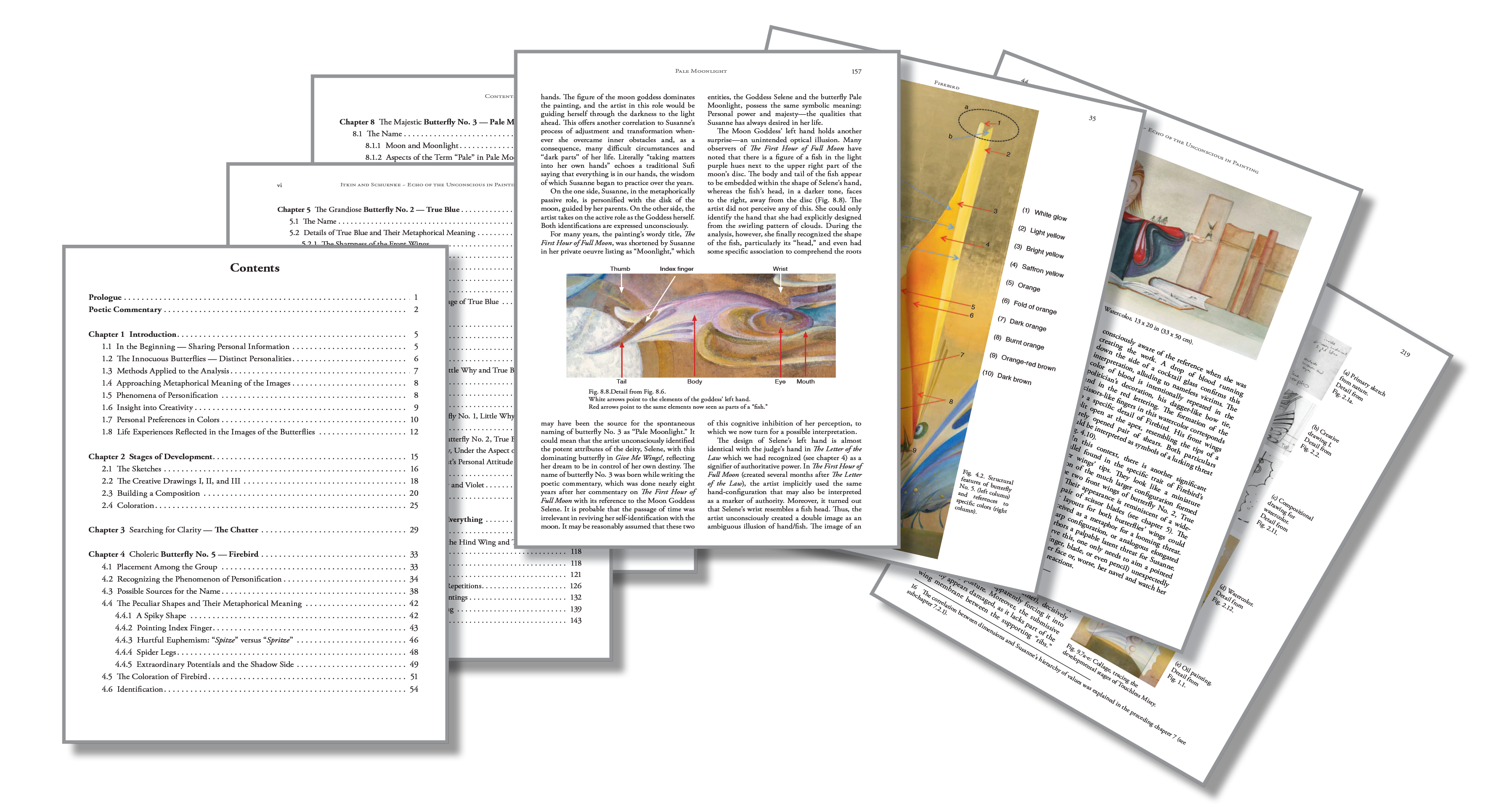 However, during their twelve year-long study, the authors, a psychotherapist and an artist, have made fascinating discoveries concerning the dominant role of the unconscious in the creation of the artist’s images. They explore the mysterious land of the unconscious in Susanne Schuenke’s surrealistic paintings, in a manner analogous to the interpretation of dreams in psychoanalysis. Based on this approach, Naum Itkin and Susanne Schuenke deciphered how personal and universal information is unconsciously coded in the artist’s mind and manifested in artworks that are allegorical, metaphorical, und symbolic expressions of her significant emotional experiences, and reflect biological, psychological, social, and spiritual aspects of human existence. The artist’s designs have been nourished by various facets in her life, attitudes, concept, beliefs, personality issues, complexes, and repressed tendencies, all of which are implicitly transmuted into imagery; every part and detail, twist and turn, and shade and shape turns out to carry pertinent, unconscious, and symbolic implications. The research has revealed how the unconscious permeates the artist’s life and relentlessly influences her perception, behavior, and decisions without her awareness. From 2007 onward, recognizing the value of such an endeavor, the artist agreed to provide private data and reveal the secrets of her intimate life for scientific purposes which have been an inestimable advantage in this study.